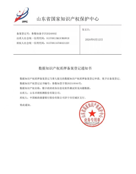 掌上济宁讯 2024年6月12日,山东卓朗检测股份有限公司以其拥有的“数字政府政务信息化软件测试常见问题数据”数据知识产权(鲁数知登字第202310044号)等作为质押物,向济宁邮储银行任城区支行融资获得500万元贷款,并在山东省国家知识产权保护中心备案。这标志着全省首批、济宁首单数据知识产权质押融资成功落地济宁任城,成功打通了企业数据加工确权进而实现数据金融价值的有效渠道,探索出一条“以数据换真金、变知产为资产”的新路子。相关典型做法6月24日在《山东政务信息》(第565期)刊登推广。